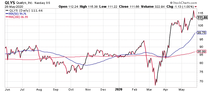 Qualys’s stock price bottomed out at $68 in March, then climbed to a year-to-date high of $117.32 on May 26, before sliding a bit. Out of 17 Wall Street analysts, five have a buy recommendation on Qualys.