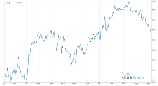 As a result of its investments in 4G and 5G coverage, 2020 was the company’s best year ever financially, with a 160% jump in revenue, from $22.7 billion in 2019 to $36.3 billion in 2020. T-Mobile’s share price has climbed by 17.0% over the trailing 12 months. The change in stock price is plotted below, alongside a 50-day moving average.
