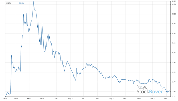 A discounted cash flow (DCF) analysis, using Stock Rover, values the stock at $3.50, 78.6% higher than its latest closing price of $1.96, earning FRSX a “STRONG BUY” recommendation from Stock Rover and a place among our three best penny stocks to buy now.