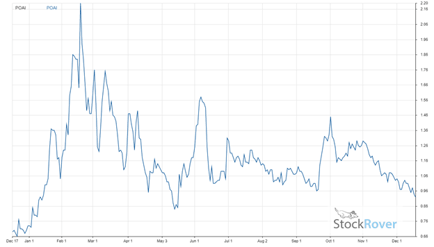 A discounted cash flow (DCF) analysis, using Stock Rover, values the stock at $5.00, 434.0% higher than its latest closing price of $0.94, earning POAI a “STRONG BUY” recommendation from Stock Rover and a place among our three best penny stocks to buy now.