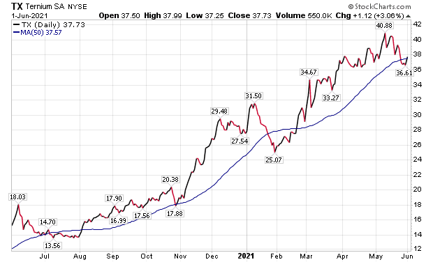 Another fast-rising steel stock has been Luxembourg-based Ternium (NYSE:TX). Its share price has leaped 150.5% in the past 52 weeks and 37.0% in 2021, as of June 1. In addition, the company’s price-to-earnings ratio of 5.2 is at a huge discount compared to the S&P 500 Index’s 36.5.