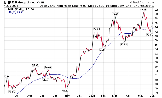 “If you’re worried about inflation draining value from the money you have, commodities are one of the best places to seek shelter,” said Hilary Kramer, who heads the GameChangers and Value Authority advisory services. “And if you have a feeling the building boom is only going to accelerate once Congress decides on an infrastructure package, there’s even a good chance of making long-term money on the mining stocks. In that scenario, I prefer base metals because they are consumed in industry and construction… forcing the miners to keep digging in order to satisfy demand.”