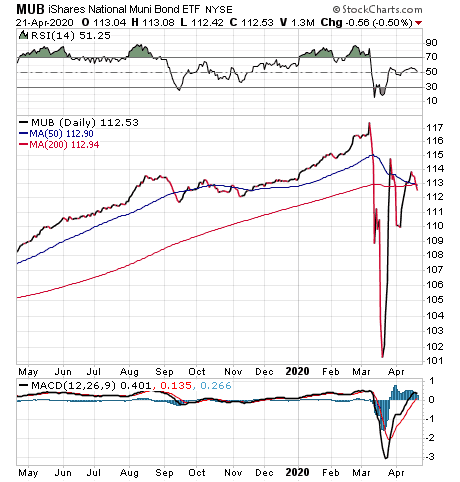The Fed’s announcement that it would buy municipal bonds added to the merit of investing in MUB, Woods said. The fund has rebounded significantly in the past month, he added.