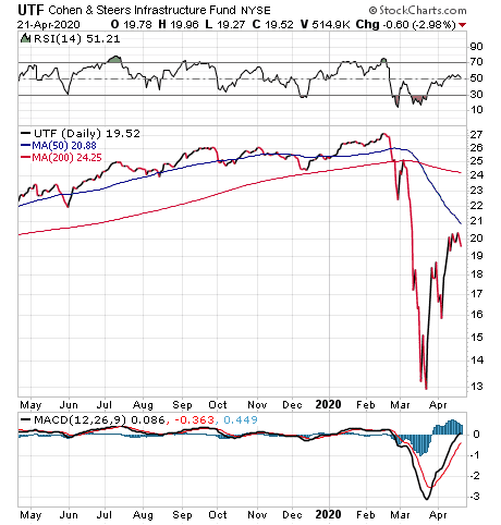 “I also like UTF because most infrastructure companies have relatively stable cash flows and strong balance sheets,” Carlson said. “Their attractive dividends should be maintained or at least will be maintained better than those at many other companies.”