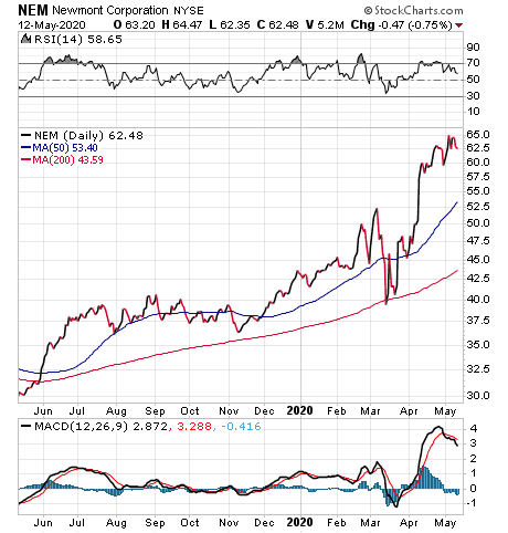 Newmont Corporation (NYSE: NEM) is another gold mining stock that could be a candidate for investors seeking to gain exposure to precious metals. The stock offers a current yield of 1.06%, while its share price jumped 44.12% so far in 2020 and 109.09% in the past year.