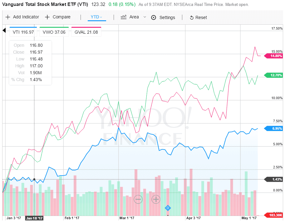 Yes, the Vanguard Total Stock Market ETF (VTI) has gained 7.26% year to date.