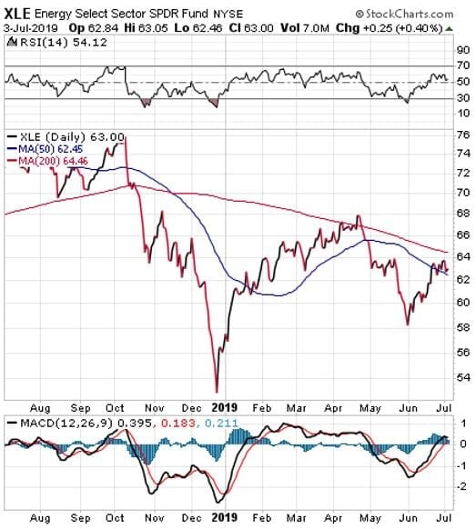 Specifically, XLE tracks the Energy Select Sector Index, which, in turn, attempts to provide an effective representation of the energy sector of the S&P 500 Index. Currently, the fund’s assets are divided between two industries, Oil, Gas and Consumable Fuels, 90.35%, and Energy, Equipment & Services, 9.65%.