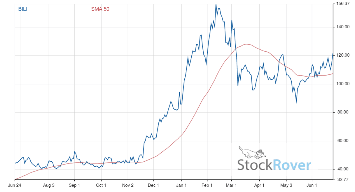 BILI’s one-year returns are charted below with a 50-day moving average line.