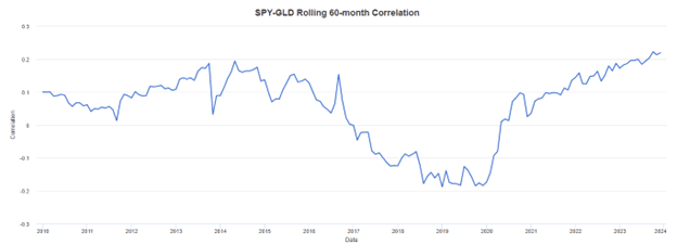 The correlation between gold and equities is slightly (emphasis on slightly) positive.