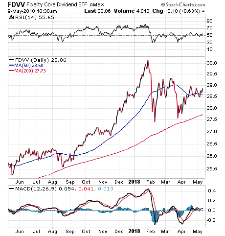 In the two-and-a-half years since its launch, FDVV has garnered over $129 million in net assets. Though by no means a huge amount, the fund has clearly received some mainstream attention.  Its lifetime return, as of March 31, 2018, was 11.74%. Year to date, the fund is below its one-year high of $30.41 set on Jan. 26 and is about breakeven for the year. FDVV offers a reasonably cheap expense ratio of 0.29% and a 3.6% yield, one of the higher yields among well-known dividend ETFs.