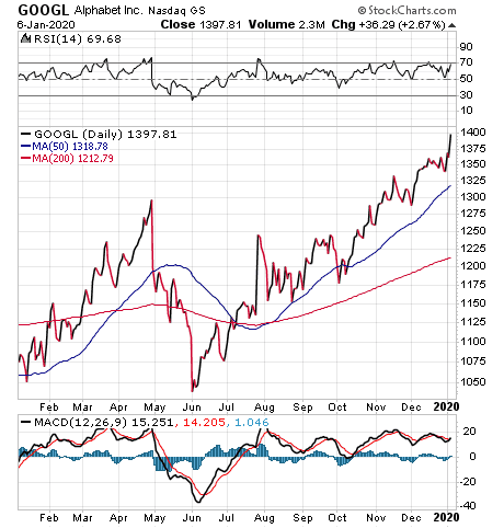 Microsoft also gives investors an extra reason to own its stock, with a 1.29 percent dividend yield to go along with strong capital appreciation in 2019, as reflected in the chart below. Plus, IBM, Microsoft and Alphabet have the lead in development and the resources to keep expanding and improving in the AI field.