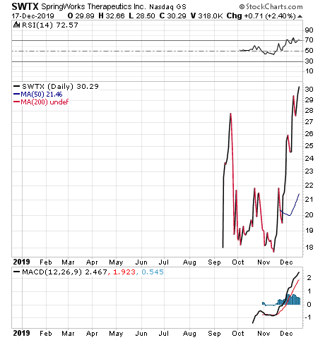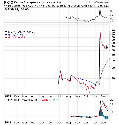 “I love the latest round of biotech IPOs,” said Kramer, who also leads the Turbo Trader, High Octane Trader and Inner Circle advisory services. “Some of them like Kaleido BioSciences (NASDAQ:KLDO) and Vir Biotechnology (NASDAQ:VIR) present huge value for investors who understand the technology and have the nerve to buy and hold the dip. Others like SpringWorks Therapeutics (NASDAQ:SWTX) and Karuna Therapeutics (NASDAQ:KRTX) started strong and got stronger.”