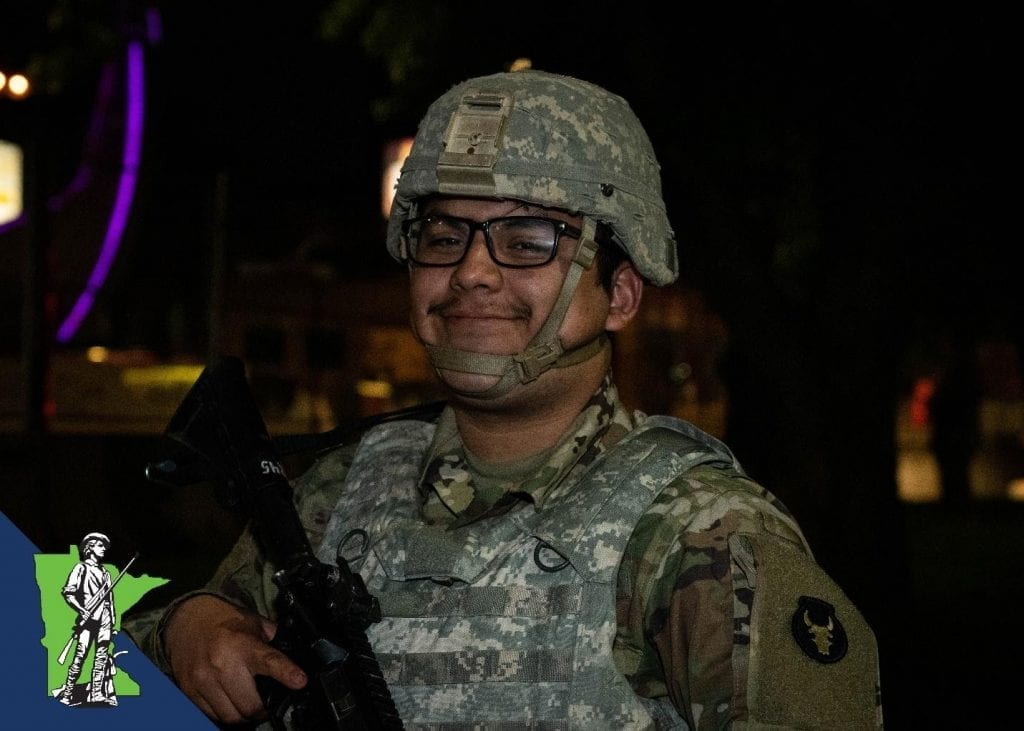 Pfc. David Sanchez (shown in the photo above) and his O’Reilly Auto Parts colleagues were transferred to another location in Minneapolis after rioters destroyed their store.