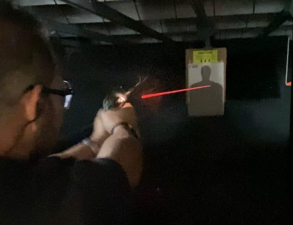 Jim Woods tests AMMO, Inc.’s Streak non-incendiary visual ammunition near the company’s headquarters.