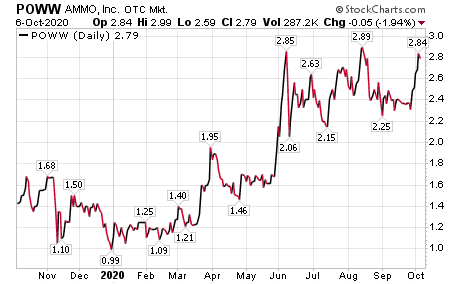 Jim Woods, a firearms expert and former U.S. Army commando who later served in the National Guard, said he likes ammunition maker AMMO, Inc. (OTCMKTS:POWW), of Scottsdale, Arizona.