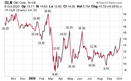 “And I’m always happy to take a look at Olin Corp. (NYSE:OLN), which is a chemical company that happens to book about 10% of its business selling Winchester ammunition to a wide range of weapons owners,” Kramer said. “Never forget that while a firearm is yours to keep, you deplete your ammunition supply every time you practice. That makes OLN interesting no matter what happens with regulation… and at a yield within sight of 6%, the cash flow really makes a difference.”