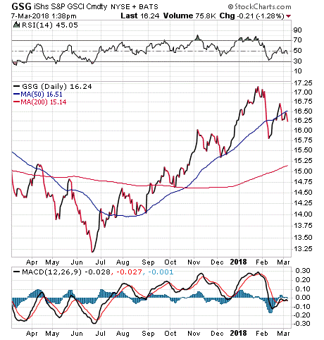 For investors who are seeking a convenient way to make a play on the overall commodities market, I encourage you to consider the iShares S&P GSCI Commodity-Indexed Trust (GSG).