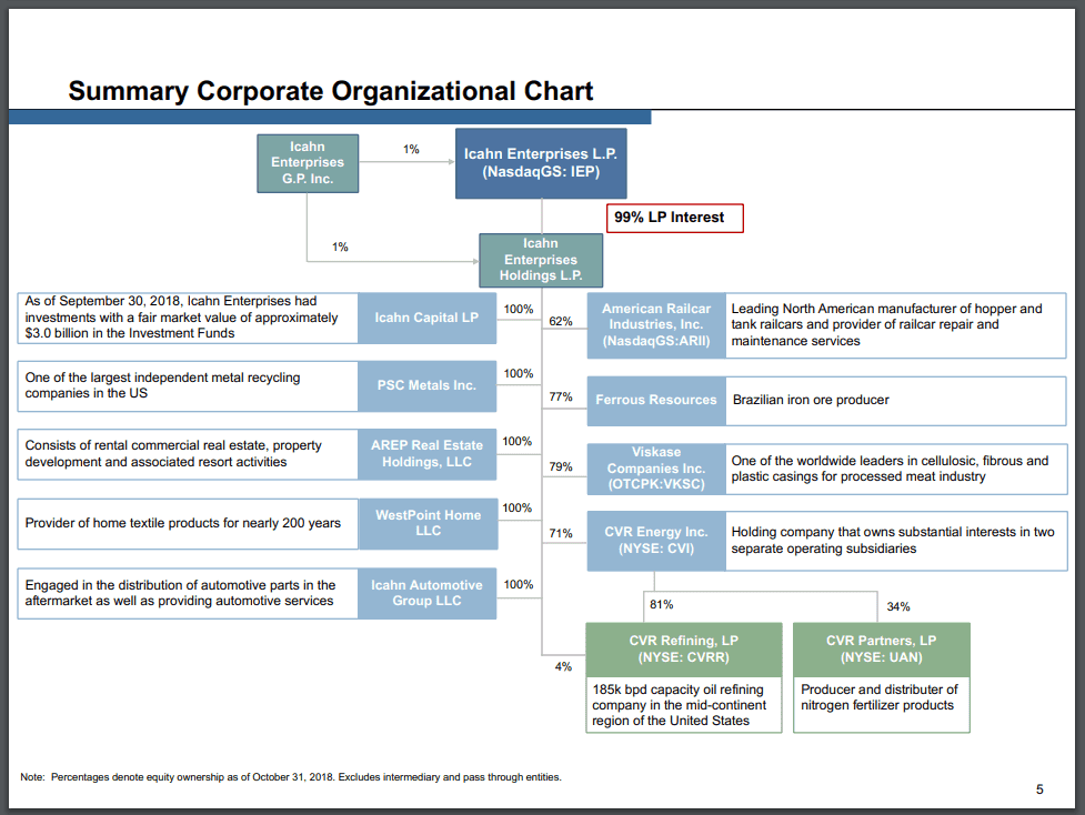 One particular MLP that got overdone in the market sell-off was Icahn Enterprises LP (IEP) — the holding company controlled by billionaire Carl Icahn. I view Mr. Icahn as one of “the smartest guys in the room” when it comes to making money over the long haul. Icahn Enterprises engages in several businesses — namely stock investments, automotive, energy, mining, railcar, food packaging, metals, real estate and home fashion.