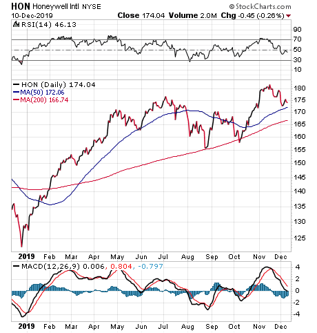 A less risky way to profit from the sector is to invest in a diversified supplier, Carlson counseled. A good choice is Honeywell International (NYSE:HON), which pays a 2.06 percent dividend yield. The conglomerate historically is an industrial company but has been adapting to changing times by becoming almost a software company, he added.