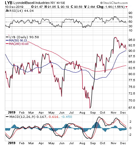 The other stock that has Perry’s attention is commodity chemical maker LyondellBasell Industries (NYSE:LYB), which sports a 4.6% dividend yield. The company reported in-line Q3 results, but quarter-on-quarter showed improvement, and the stock popped from $90 to $98. It since then has retraced that earnings spike.