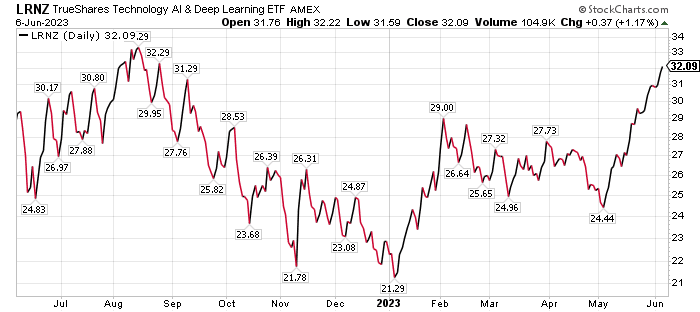 By the market’s close on June 5, LRNZ had jumped 24.85% in the last month, 16.12% in the past three months and an impressive 38.73% year to date (YTD). The fund also has a current expense ratio of 0.69%.