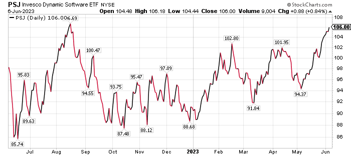 PSJ lost 27.73% in 2022 but is up 15.52% so far in 2023, 5.27% in the last 12 months, 8.05% in the past three months and 10.41% in last one month. The fund also offers a modest dividend yield of 2.0%.