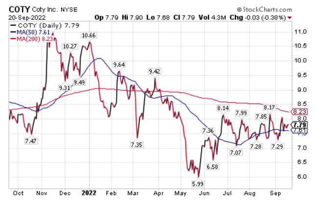 Approximately 53% of COTY’s fiscal year 2022 revenues came from prestige fragrance, of which about 82% flowed from the company’s top six prestige fragrance brands. COTY holds a 25.9% stake in the Wella hair care company. COTY is a “controlled company” under NYSE rules, since JAB Cosmetics and its affiliates own more than 50% of total voting power.
