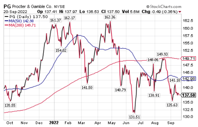 Procter & Gamble seems more stable than EL (Estée Lauder) which is down 35% year to date (YTD), along with COTY, down 27% YTD.
