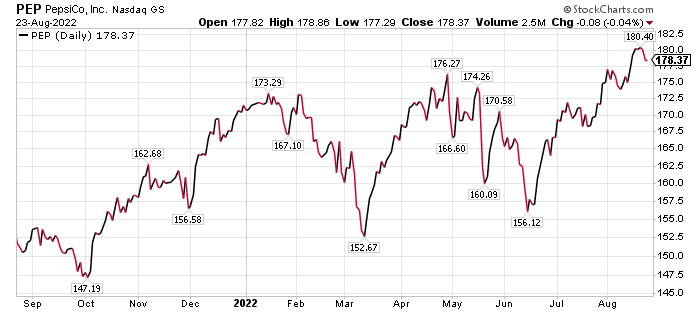 “Consumer staples, of which food and beverage are a subset, usually outperform stock indexes during recessions and bear markets,” said Bob Carlson, a pension fund chairman who also leads the Retirement Watch investment newsletter. “The companies tend to have reliable cash flows and can increase prices as costs rise. Consumers will reduce spending in other areas when money becomes tight.”