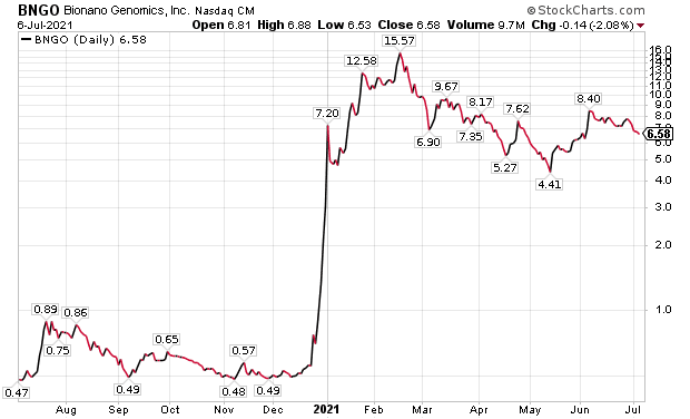 BioNano Genomics received a “buy” recommendation on June 16 from the New York-based BTIG investment firm, along with a $10 price target. That projection would mark a 52.0% increase from the company’s closing price of $6.58 on July 6.