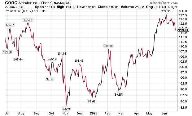 Risks for investors in Alphabet include an uncertain macro backdrop that may impact cloud and network business growth and margins, large language models (LLM) integration in search may take longer than expected or negatively impact search. Other risks encompass query share loss to Bing, concerns about a new regulatory framework in the European Digital Markets Act (DMA) and the U.S. Department of Justice’s recent lawsuit challenging Google’s ad exchange business and the importance of keeping Samsung and Apple search distribution deals.