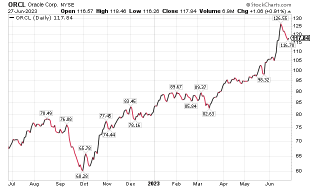 Year to date (YTD), Oracle’s stock has zoomed 46%. In the last year, it has soared 78%.
