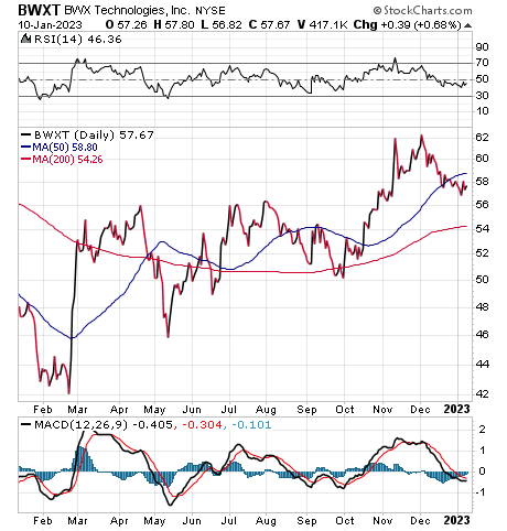 Outperformance could occur if BWX achieves better-than-forecast operating results and margins, demand increases for nuclear aftermarket at power plants and the need for missile tubes on the Virginia-class and Ohio-class submarines grows. Acquisitions also could provide upside, BofA wrote in a research note.
