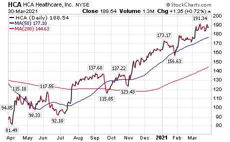The health care investments to purchase offer strong potential to profit from the economic reopening that will favor providers who should see improving trends as COVID-19 wanes and volumes rise on favorable year-over-year comparisons for the rest of 2021. The performance of hospital chains should improve starting in March amid cost controls and patients becoming increasingly comfortable seeking care for non-urgent conditions they may have delayed during the pandemic before the expanded rollout of COVID-19 vaccines.