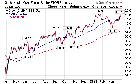 Instead, pharmaceutical stocks trailed the S&P 500 during the last year, Carlson continued. Part of the reason is the vaccine makers did not receive as much money as they would have in normal times when selling their vaccines to governments, he added. Another reason they lagged is many people avoided doctor’s offices and hospitals to avoid getting infected, so pharmaceutical sales weren’t robust.
