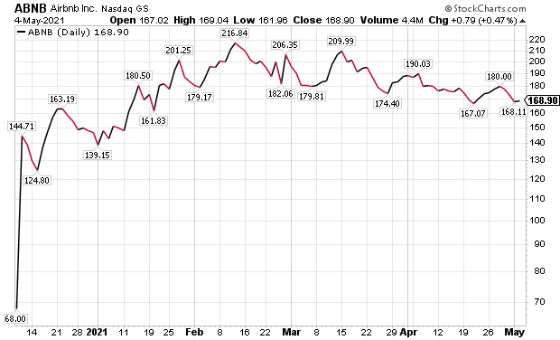 The stock is up about 40% for her subscribers in a matter of months. Airbnb, created in 2007 when two Hosts welcomed three guests to their San Francisco home, has grown since then to 4 million Hosts who have welcomed more than 800 million guests in almost every country in the world.