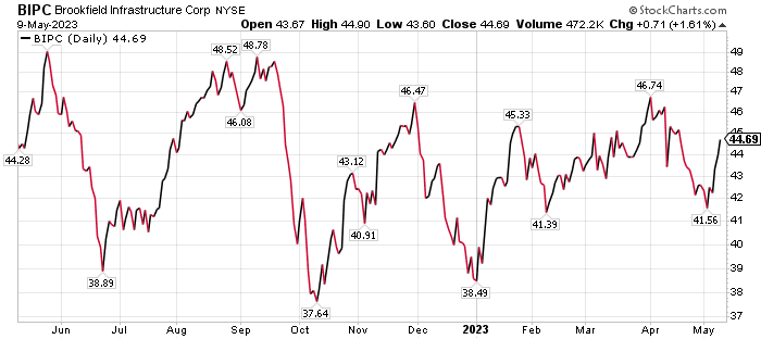 Brookfield Infrastructure Corporation (NYSE: BIPC), of Toronto, is up 9.61% since the stock was recommended by the Forecasts & Strategies investment newsletter on November 8, 2021. Mark Skousen, PhD, heads the Forecasts & Strategies investment newsletter and also teaches at Chapman University, where he is currently a Presidential Fellow and a past winner of the school’s “My Favorite Professor” award.