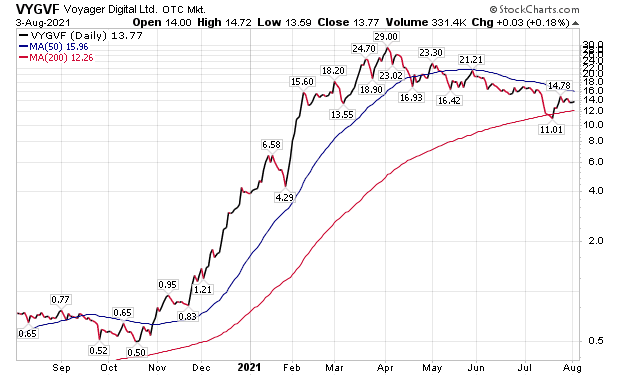 Voyager Digital (OTCMKTS:VYGVF) is a cryptocurrency brokerage firm that allows customers to buy and sell Bitcoin, Ethereum, Dogecoin, etc. I personally bought shares in the stock earlier this year in hopes of profiting from increased investor interest in cybersecurity without needing to choose the ultimate winners in a crowded field of cryptocurrency entrants.