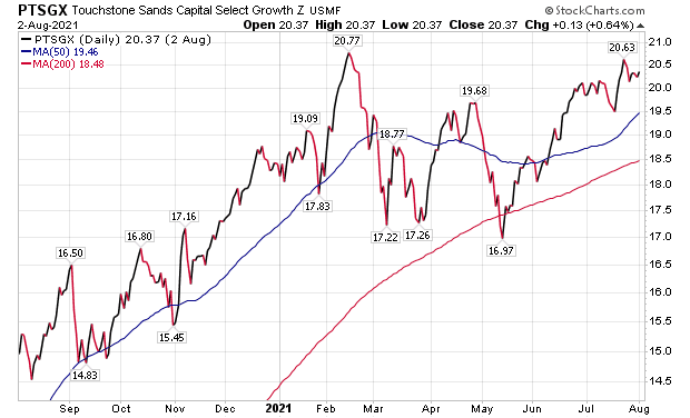 “The fund focuses on a small number of growth companies that the fund managers have studied closely and in which they have great confidence,” Carlson said. “Recently, the fund held only 30 stocks and had 58% of the fund invested in the 10 largest positions.”