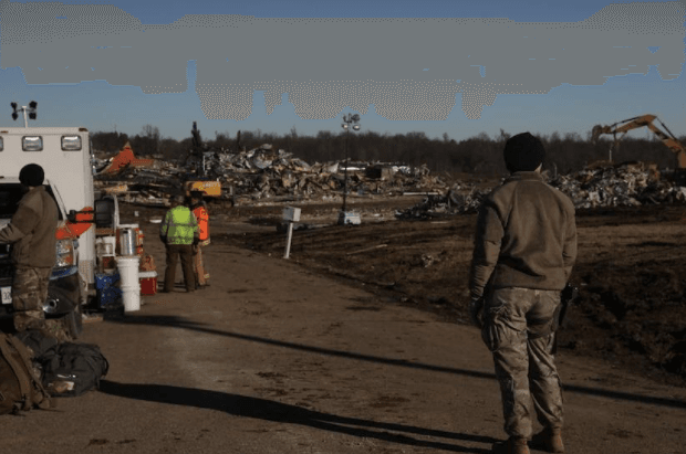 Post-tornado search and rescue missions occur on Dec. 12 in Mayfield, Kentucky. Photo courtesy of Spc. Brett Hornback of the Kentucky National Guard.
