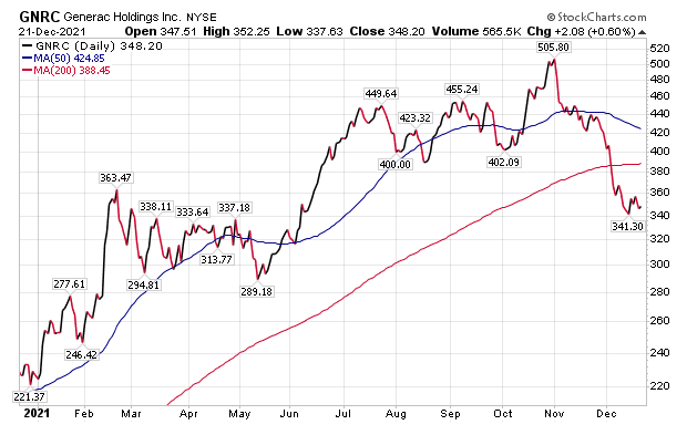 Generac Holdings Inc. (NYSE: GNRC) is a Waukesha, Wisconsin-based provider of power generators, energy storage systems, grid services and other power-producing products that serve the residential, light commercial and industrial markets. The company is a new recommendation of Bank of America Global Securities.