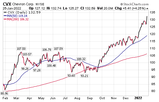 The top holding in the Energy Select SPDR (XLE) exchange-traded fund is Exxon Mobil, said Bob Carlson, who leads the Retirement Watch investment newsletter. Carlson, who also serves as a pension fund chairman, added that energy stocks had a strong finish to 2021, and most of the factors that drove those gains continue in 2022.