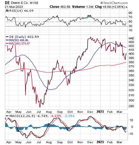 Skousen observed that Deere is selling under 16 times forward earnings and has a return on equity (ROE) of 37%. Skousen, who heads the Forecasts & Strategies investment newsletter, further recommended specific call options in Deere, which can ascend much faster than the stock price.