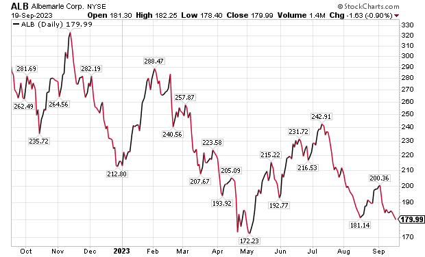 Another winning trade featured Albemarle Corporation (NYSE; ALB), a specialty chemicals company in Charlotte, North Carolina. The stock gained 13.23% in just 45 days before it was sold on June 23. Related options recommendations averaged a gain of 78.99%.