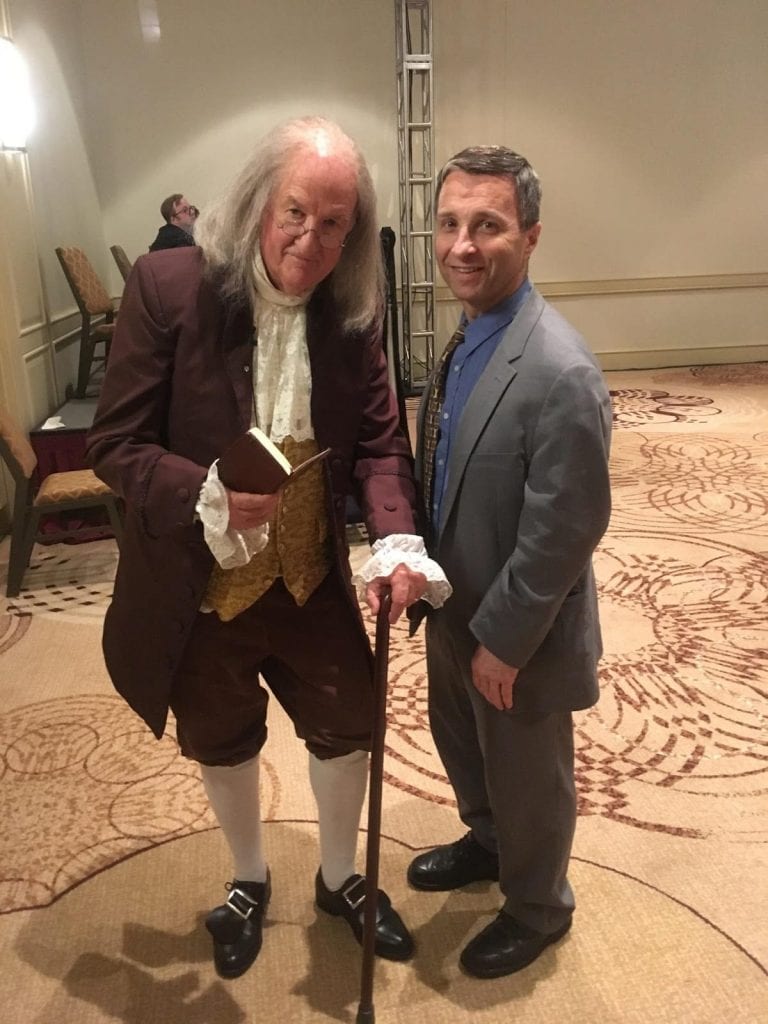 Mark Skousen, PhD, a descendent of Benjamin Franklin, meets with Paul Dykewicz.