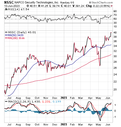 Napco Security Technologies (NASDAQ: NSSC) is an Amityville, New York-based manufacturer of security products, featuring advanced technologies for intrusion, fire, video, wireless, access control and door-locking systems. Its products are sold and installed by tens of thousands of security professionals worldwide to serve commercial, industrial, institutional, residential and government applications.