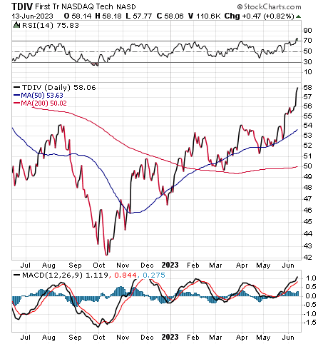 A broad-based fund with a decent dividend yield that offers some exposure to artificial intelligence is First Trust NASDAQ Technology Dividend Index (TDIV). The ETF tries to track the Nasdaq Technology Dividend Index, which is composed of technology and telecommunications companies, said Bob Carlson, a pension fund chairman who heads the Retirement Watch investment newsletter.