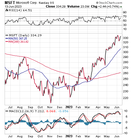 Microsoft (NASDAQ: MSFT), an income-paying software development company in Redmond, Washington, is engaged in artificial intelligence and has leaped about 40% so far this year. The company reported better-than-expected results for its fiscal third quarter, especially in its Microsoft Cloud business, according to Chicago-based investment firm William Blair & Co. Third-quarter revenue for Microsoft finished $1.8 billion ahead of consensus estimates.