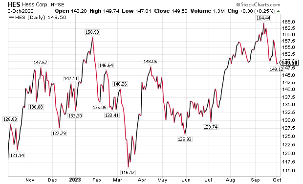 As far as upside in the stock, BoA set a $210 per share price objective on Hess, based on $75 West Texas Intermediate crude. That price estimate is well below the West Texas Intermediate crude price of $89.41 on Tuesday evening, Oct. 3.