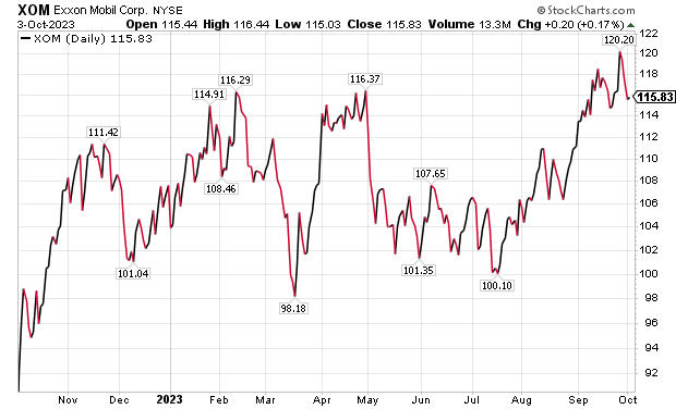 The four big oil stocks can be purchased at a slight discount after their shares slipped recently amid profit taking after crude prices surged to the $90-95 range to mark their highest level since August 2022. Oil supplies at a major storage hub in Cushing, Oklahoma, have fallen to their lowest level since July 2022, with U.S. West Texas Intermediate futures rising to $95.03 per barrel on Sept. 28, pulling back to $88.82 on Monday evening, Oct. 2, before climbing to $89.41 on Tuesday evening, Oct. 3.